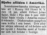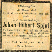 son till Johan Spjut * 3/6 1887 i Björkenäs Hjo 18/1 1912 i New York |